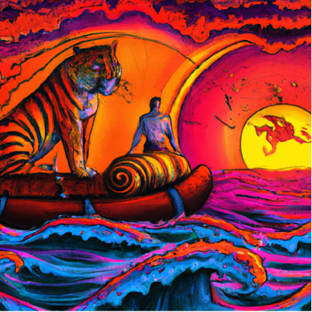 Piscine finds himself in the deep everlasting waters of the Pacific, thousands of miles away from land, a tiger in his midst, and he seeks God. He finds Vishnu in the fish he catches. He sees Allah in the rain clouds dropping fresh water into his buckets. He prays to God as the sun comes up. He asks for the strength to live another day.